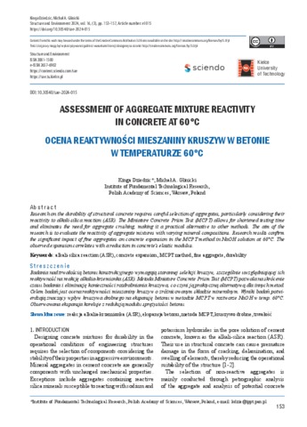 Dziedzic, Kinga and Glinicki, Michał A. (2024) Assessment of aggregate mixture reactivity in concrete at 60°C (Ocena reaktywności mieszaniny kruszyw w betonie w temperaturze 60°C). Structure & Environment, 16 (3). pp. 153-157. ISSN 2081-1500 e-ISSN 2657-6902